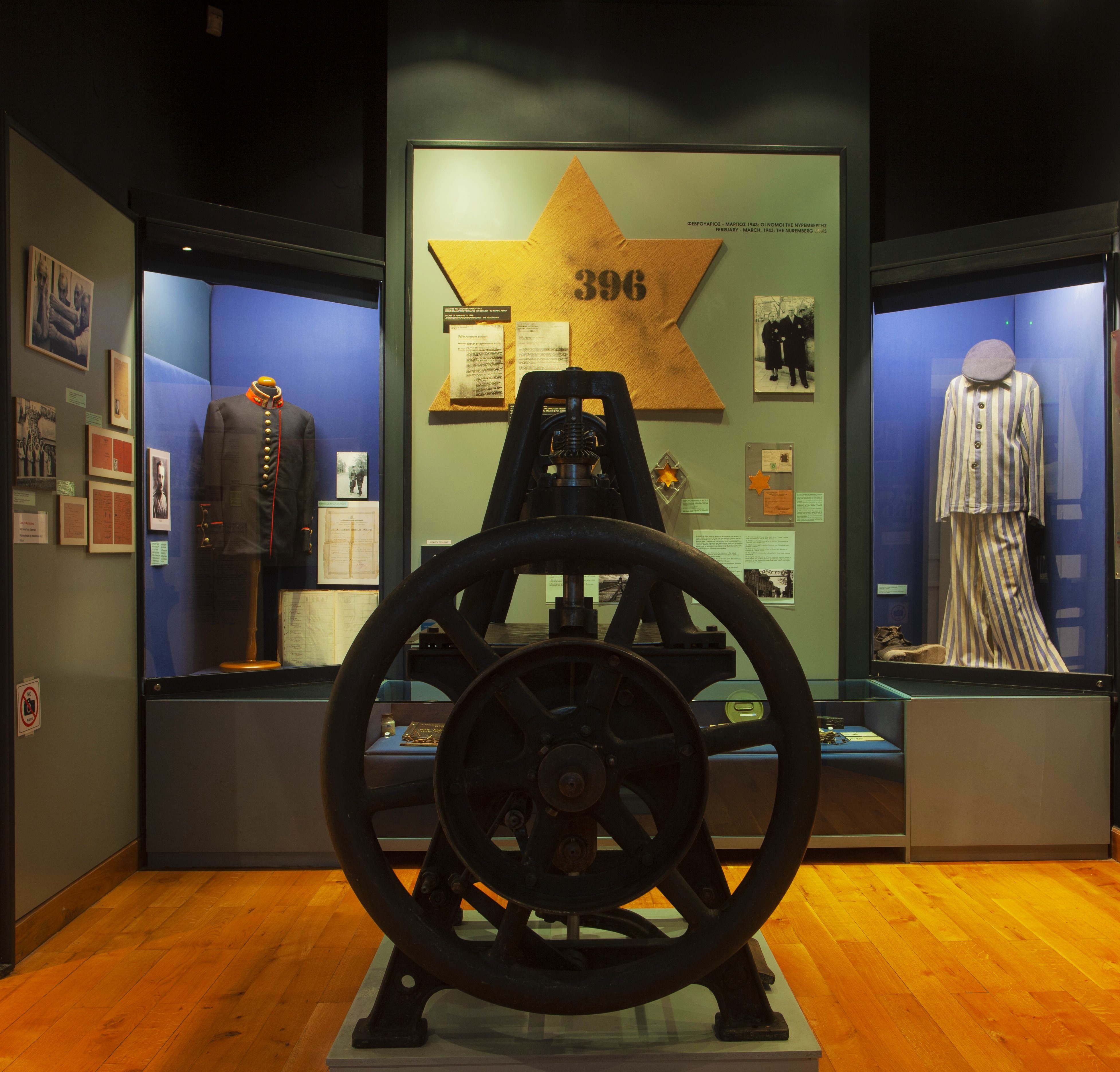 Η πρέσα αυτή και μία από τις κοπτικές μήτρες της παραχωρήθηκαν το 1942 στην Ισραηλιτική Κοινότητα Θεσσαλονίκης για την κοπή των κίτρινων άστρων με τα οποία εφοδιάστηκαν όλοι οι Εβραίοι της πόλης. Αποτελούσε ιδιοκτησία του Τυπογραφείου Γκατένιο, που μετά τον πόλεμο λειτούργησε ως Τυπογραφείο Γκατένιο & Χάγουελ.