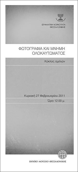 - Ομιλία με θέμα «Φωτογραφία και μνήμη ολοκαυτώματος», με αντικείμενο τη φωτογραφική αναζήτηση της μνήμης