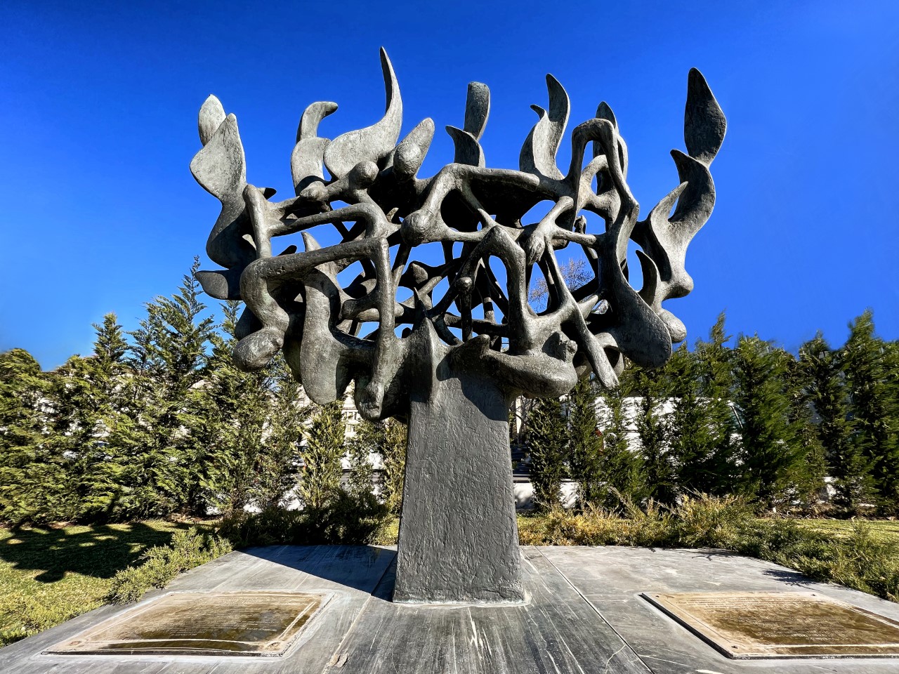 Το Μνημείο προς τιμή των 50.000 Ελλήνων Εβραίων της Θεσσαλονίκης που μαρτύρησαν στα Ναζιστικά στρατόπεδα του θανάτου, βρίσκεται στην Πλατεία Ελευθερίας όπου μεταφέρθηκε το 2006. Αποκαλύφθηκε στη συμβολή των οδών Αλεξάνδρου Παπαναστασίου και Νέας Εγνατίας, στις 23 Νοεμβρίου 1997 από τον Πρόεδρο της Δημοκρατίας κ.Κωνσταντίνο Στεφανόπουλο. Σχεδιάστηκε από τους αδελφούς Glid και παριστάνει την επτάφωτο λυχνία και φλόγες με ένα πλέγμα ανθρώπινων σωμάτων.